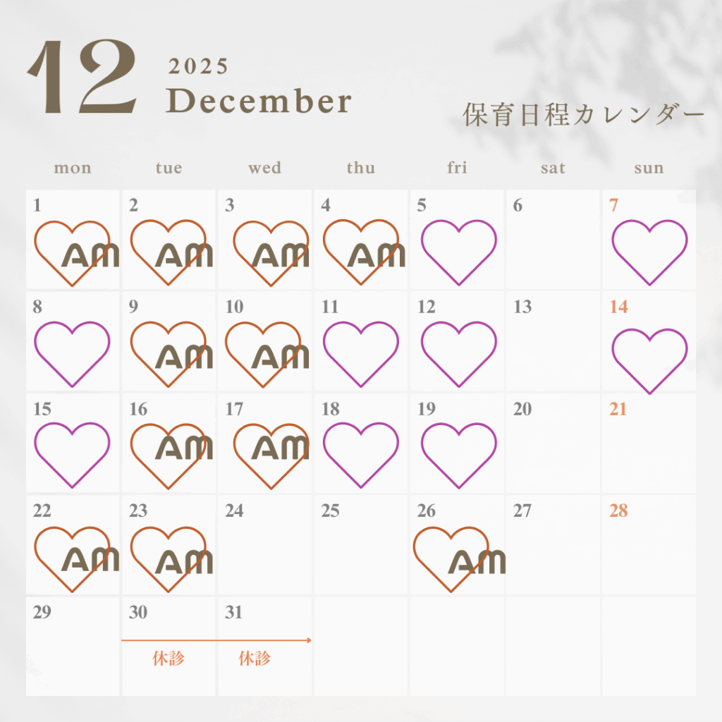 2025年12月の保育サービス日程です😊